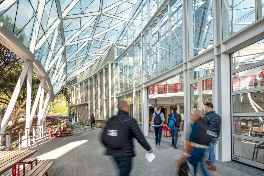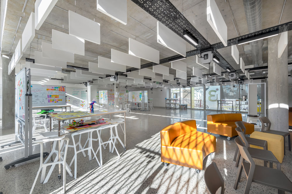 The building features radically flexible learning spaces where we can experiment and collaborate with the students to both understand and allow for the emergence of what future learning spaces could look like, and become.